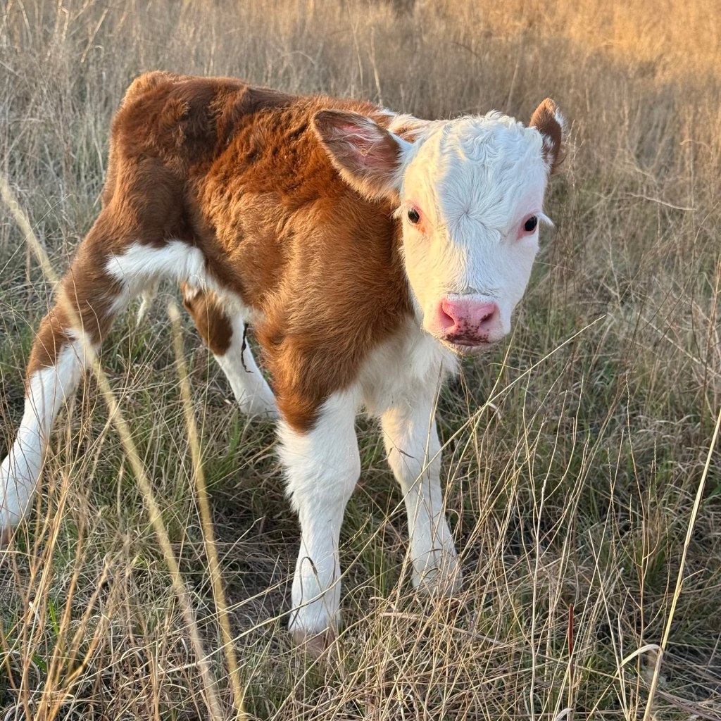Mini Calf. Mother: Mini Hereford. Father: 1/2 Belted Gallow; 1/4 Mini Hereford; 1/4 Charolais Sweet. Born 3/25/25. Bull. Will be available around 9/27/25. $1,000 or best offer.